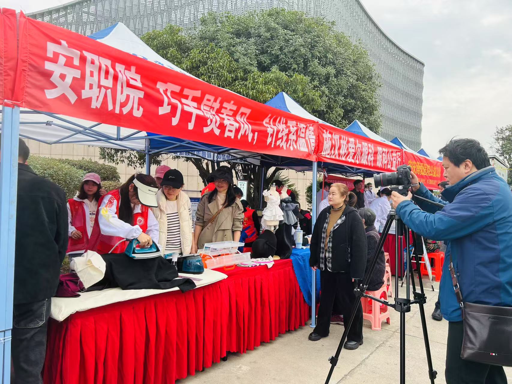 活动现场,服装团队党员教师带领服装设计与工艺专业学生,携带缝纫机、熨烫机等专业设备,为市民提供衣物缝补、熨烫等便民服务。学生们娴熟地穿针引线、调整熨斗温度,细致处理市民送来的衣物。从修补开线的校服到熨平褶皱的西装,志愿者们用专业技能让一件件旧衣焕发“新生”。市民张奶奶拿着缝补好的裤脚连连称赞:“这些孩子技术好、态度更暖心,真是把服务送到了我们心坎上!”